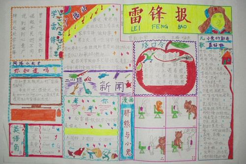 这幅雷锋手抄报,版面设计很好,花边、图片搭配非常好,内容安排丰富多彩,既有绕口令、新闻、还有一些有趣的小故事,非常值得学习。