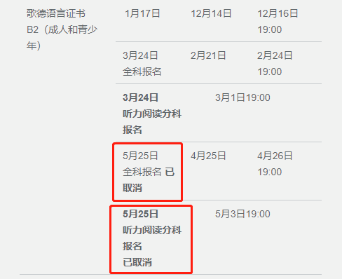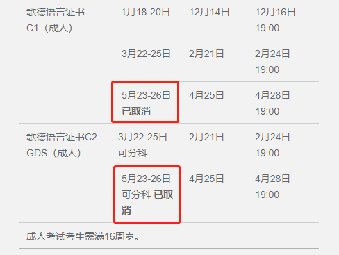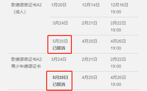 歌德考试院北京分院官网的考试时间安排上也已经显示5月考试的取消情况立即咨询>>