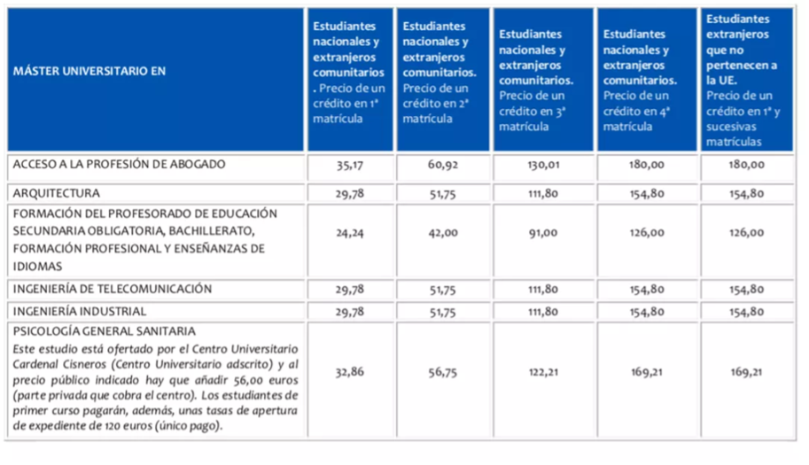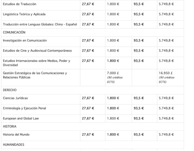 马德里自治大学的大多数专业都是84,07欧/学分,以60学分为例,注册费为5,079欧元。