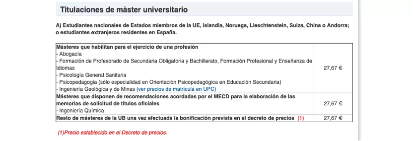巴塞罗那自治大学的硕士分为两种:
