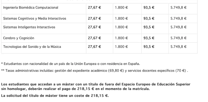 庞培法布拉大学,非欧盟学生,93.5欧元/学分,以60学分制为例即5749.8欧元,仍需要缴纳218,15欧元的注册费。