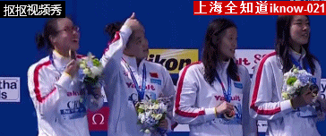 而她在讲台上领奖的样子也和队友完全不一样,简直就是一个多动症患儿: