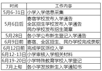 西城区2021年小学入学工作时间安排表