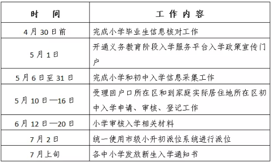 东城区2021年义务教育阶段入学工作时间表