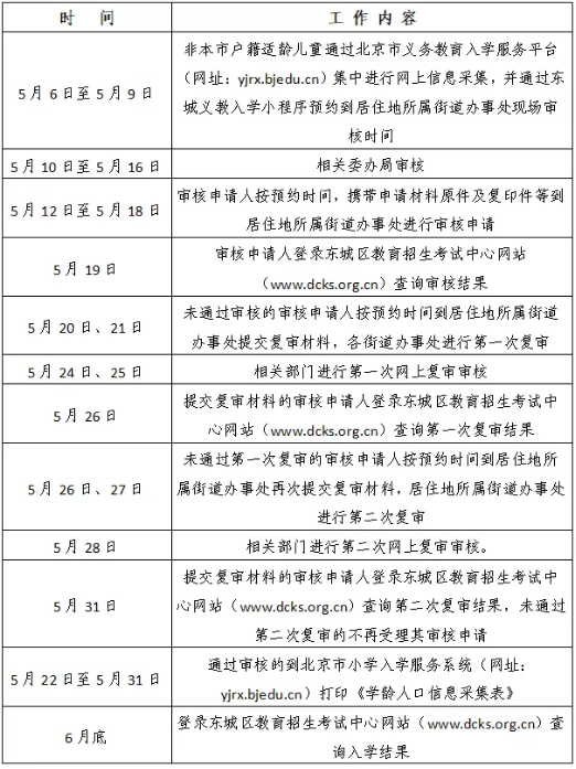 东城区2021年非本市户籍适龄儿童少年入学审核工作时间表