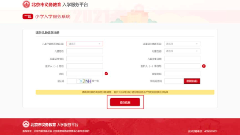 5. 根据儿童实际情况和系统提示来填写注册信息,点击“提交信息”完成注册过程。