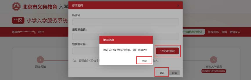 4. 输入两次完全一致的密码和短信验证码后,点击“提交信息”按钮,系统提示“修改成功”即说明密码修改成功。下次登录请使用修改后的密码。