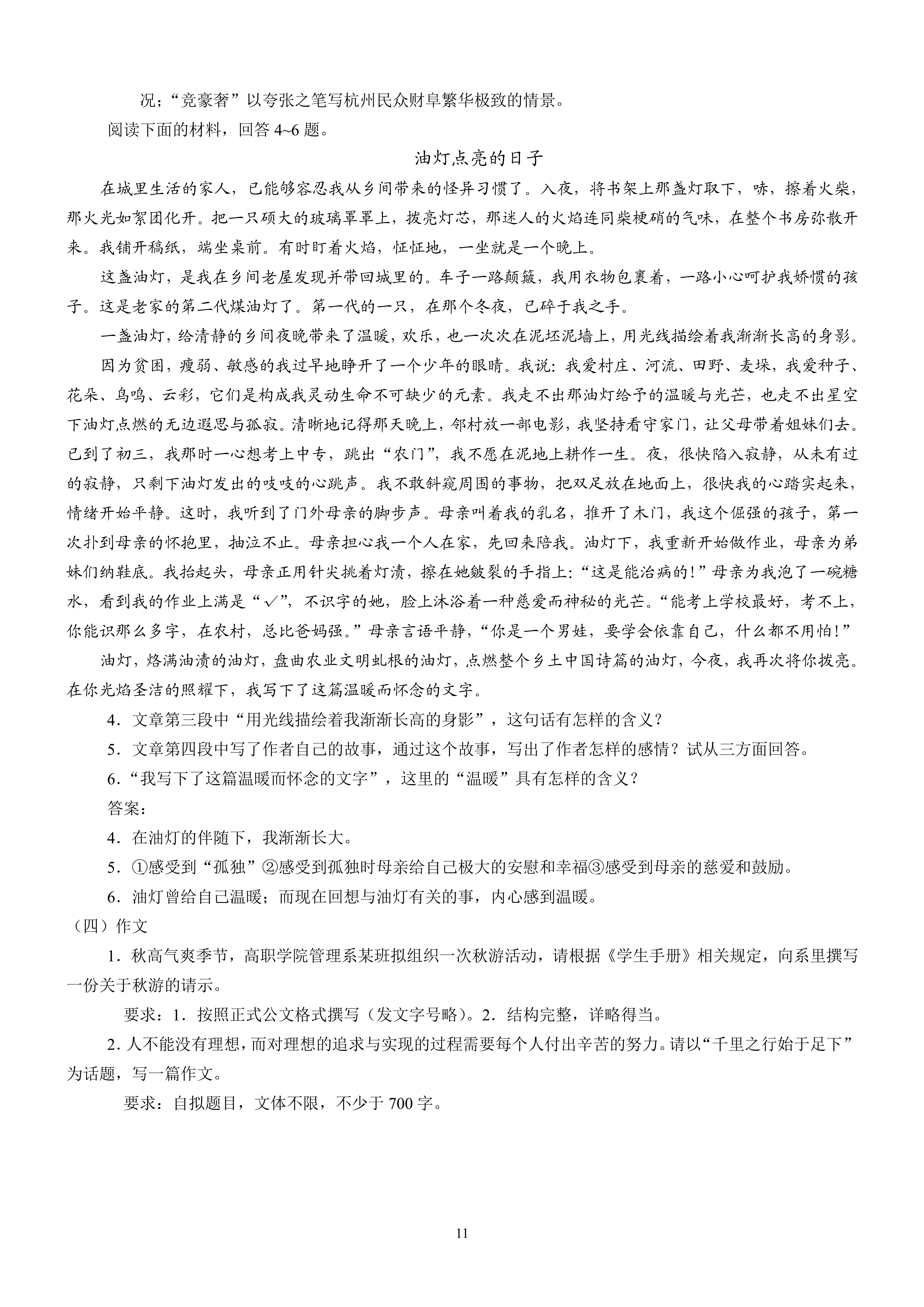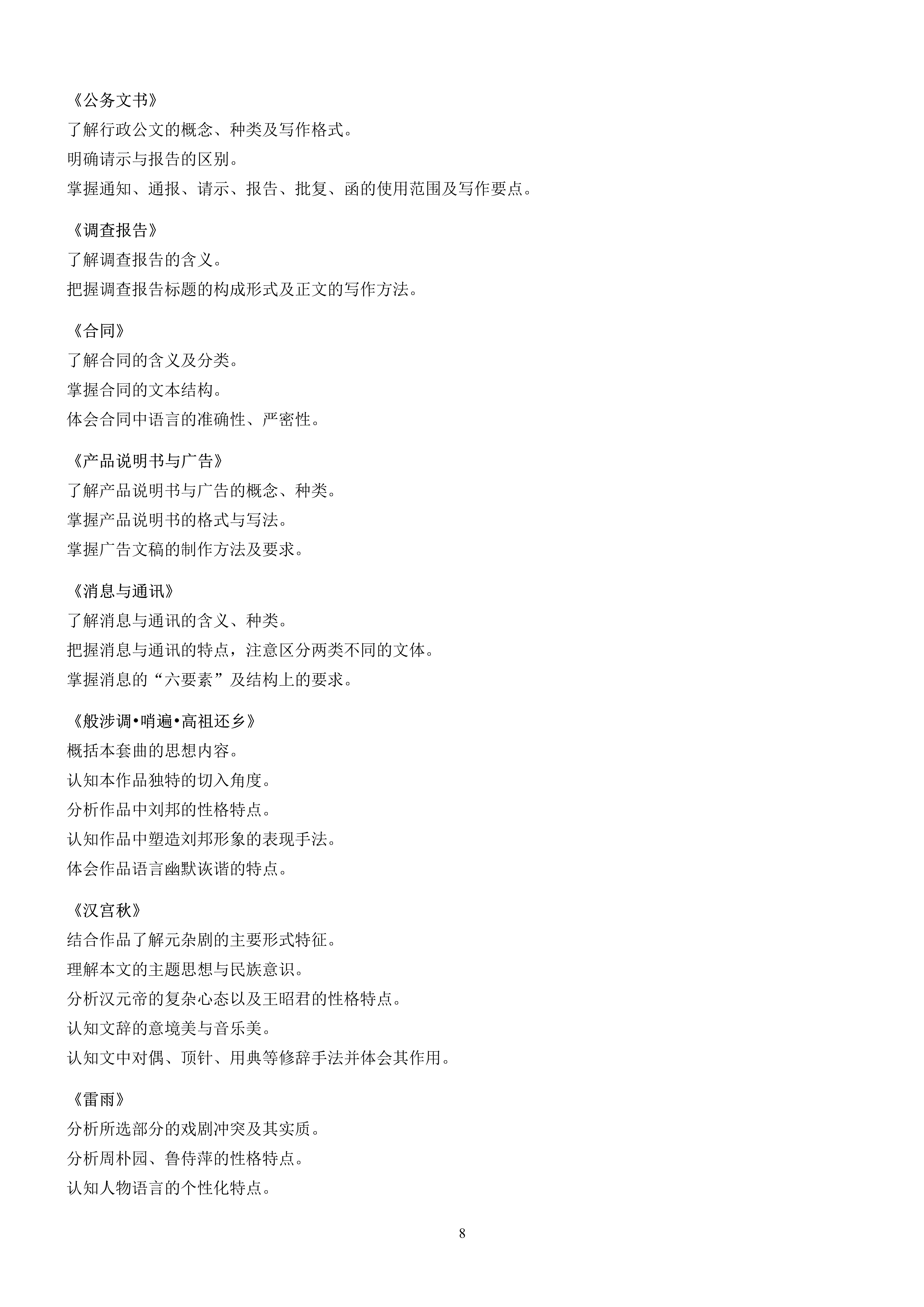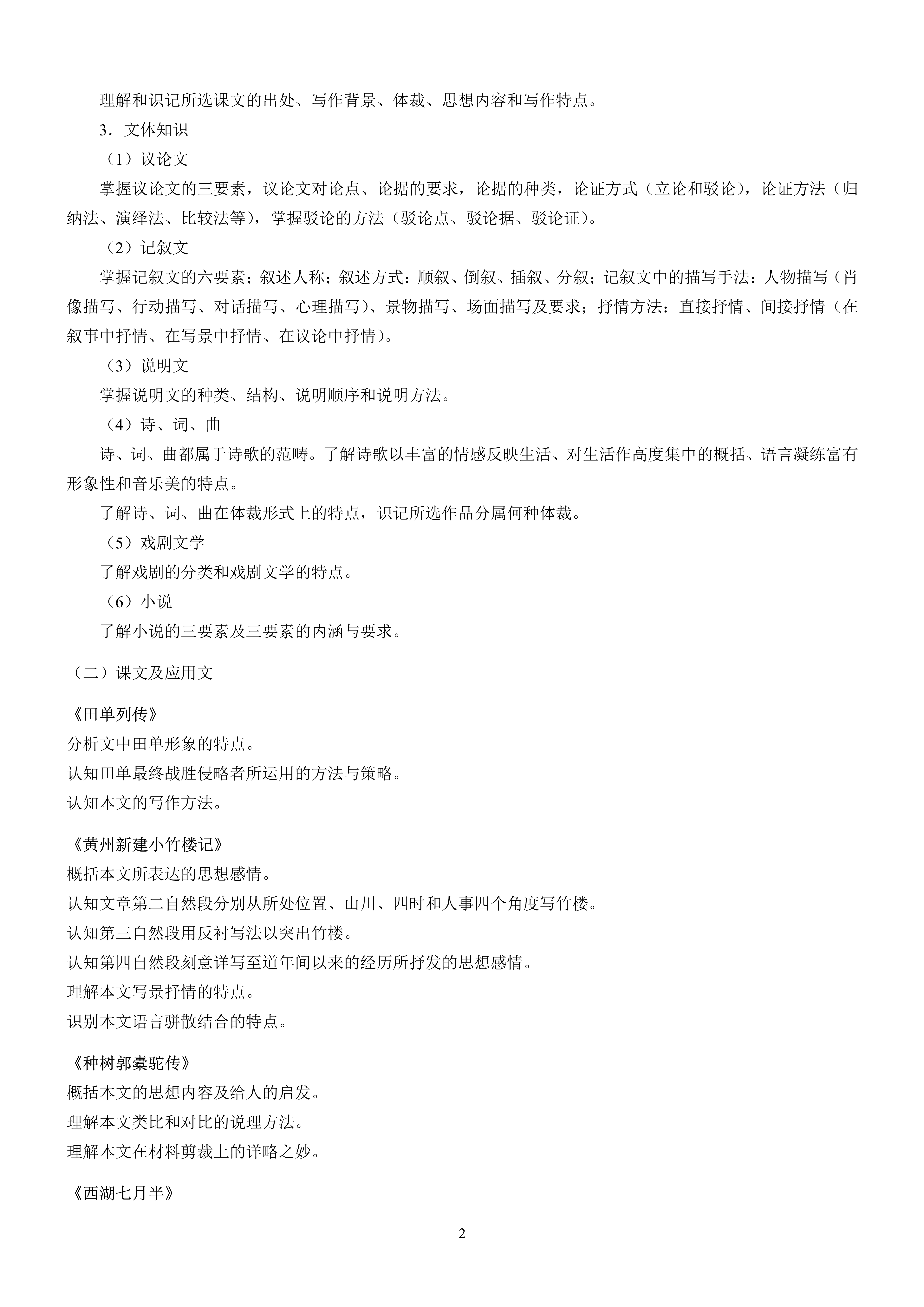 天津市高职升本科考试语文基础考试大纲