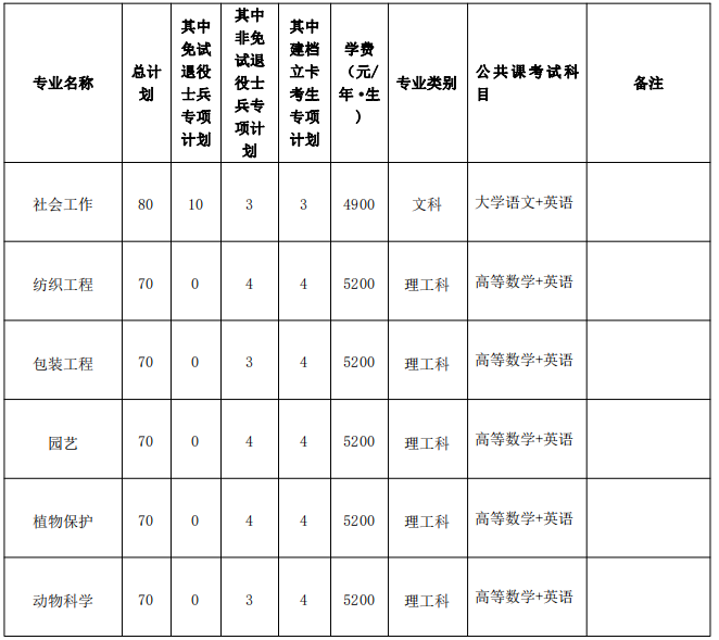 (1)三等功鼓励政策退役士兵、技能大赛鼓励政策考生招生计划包含在以上招生计划内。技能大赛鼓励政策考生录取比例不超过纺织工程、包装工程考生总计划的 10%。