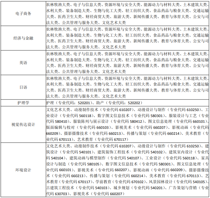 2.1.1 2022 年安徽省省属普通高校(以及经过批准举办普通高等职业教育的成人高等院校)的应届全日制普通高职(专科)毕业生;在安徽省应征入伍具备普通高职(专科)学历的退役士兵。所有考生须参加省考试院统一组织的报名, 并取得考生号。身体条件符合《普通高等学校招生体检工作指导意见》的体检要求,同时毕业专业须符合我校相应专业招生专业范围的要求,毕业专业非以上专业(类)的考生不能报考我校相应专升本专业。