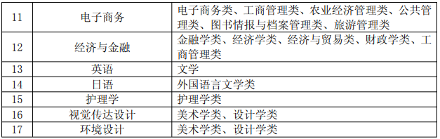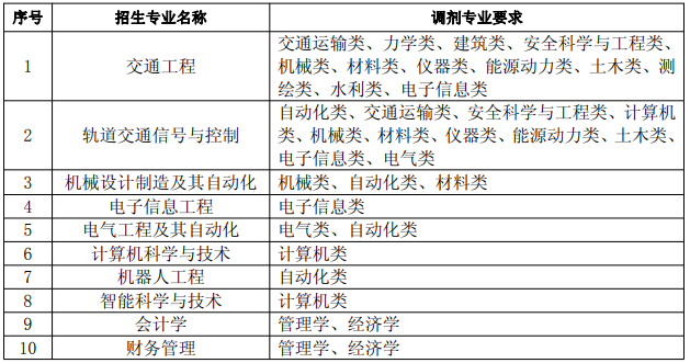 a.申请调剂的专业与原报考专业公共课考试科目相同、专业类别一致,不接受跨专业类别调剂;b.公共课达到省考试院统一划定的分数线且未被任何学校录取(填报免试退役士兵专项计划调剂志愿的考生除外);c.毕业专业须符合我校招生专业范围要求;d.原报考专业与报考的调剂专业要求如下表: