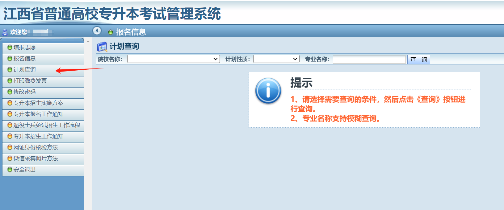 4.点击左侧任务栏中的“计划查询”,进入计划查询页面。(如下图)