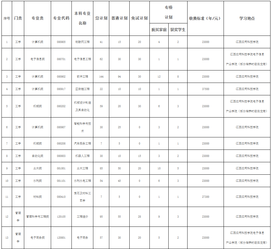 以上内容是2024年江西应用科技学院专升本招生简章的详情内容,想了解更多该院校信息,包括但不限于历年报录比、分数线、招生人数、招生专业等内容,可以直接联系李老师15649503918,或者进行在线咨询。