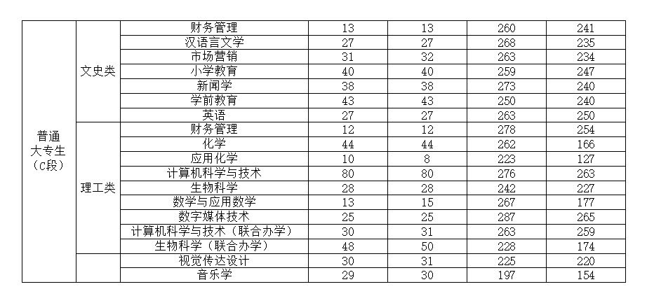 2024渭南师范学院专升本分数线公布