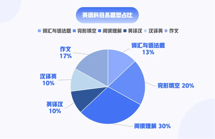 试卷分为第 I 卷和第 II 卷两部分。第 I 卷包含词汇与语法、完形填空、阅读理解三部分,为客观性试题,满分 95 分;第 II 卷包含英译汉、汉译英及写作三部分,为主观性试题,满分 55 分。