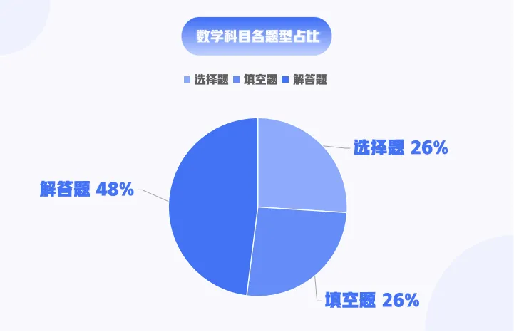 选择题和填空题约占总分的48%左右,解答题约占总分的52%左右。试卷包括容易题、中等难度题和较难题,总体难度适当,以中等难度题为主。