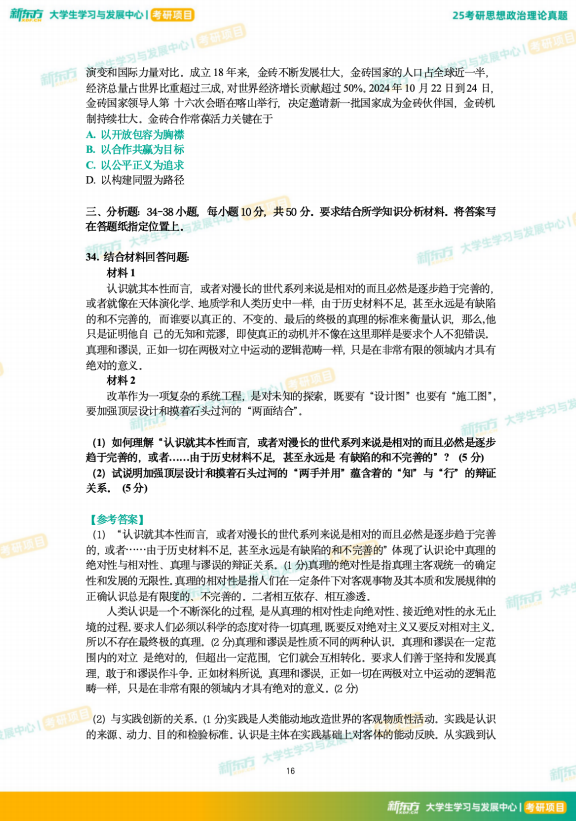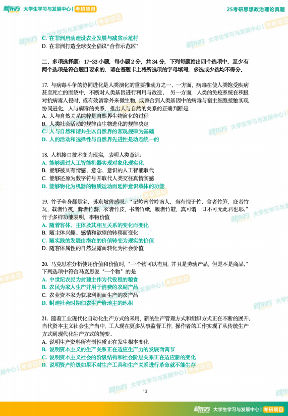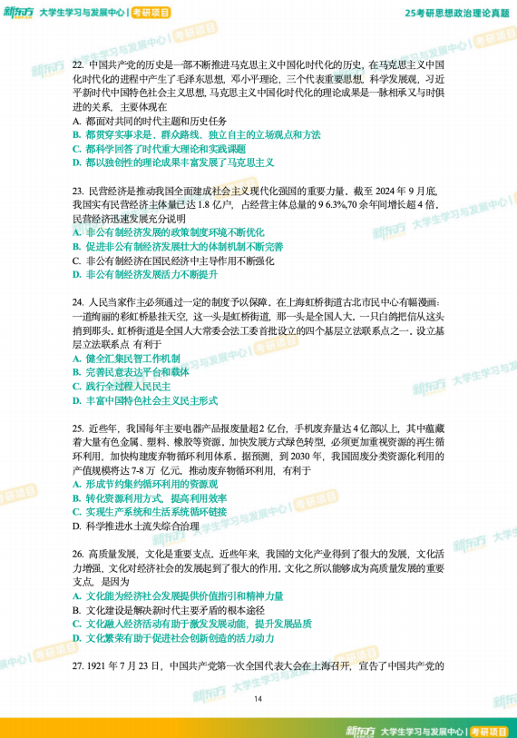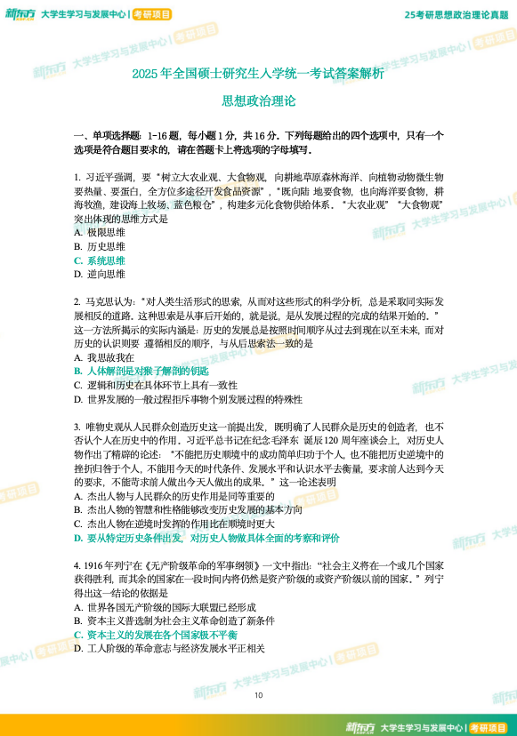 25考研政治真题及解析--下