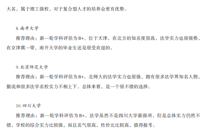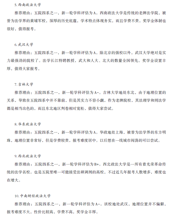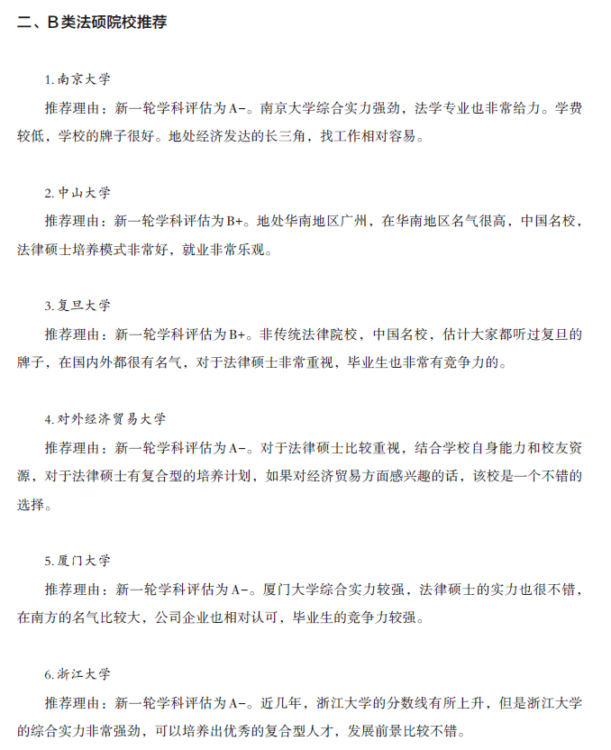 法律硕士院校推荐