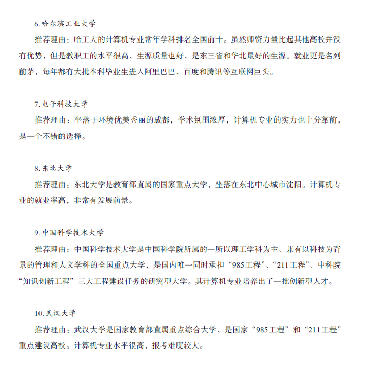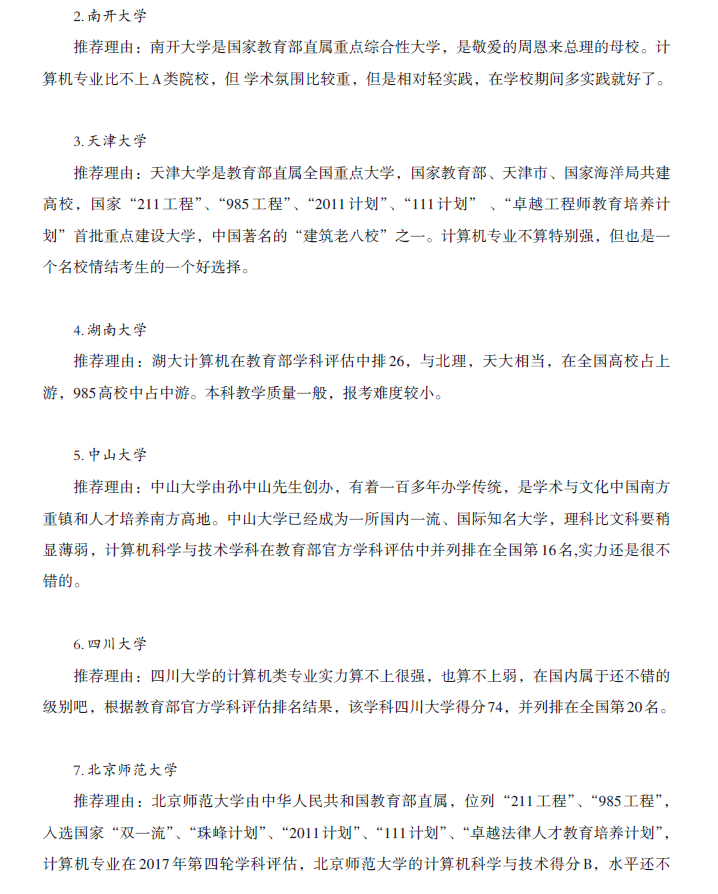 计算机院校推荐及参考书目