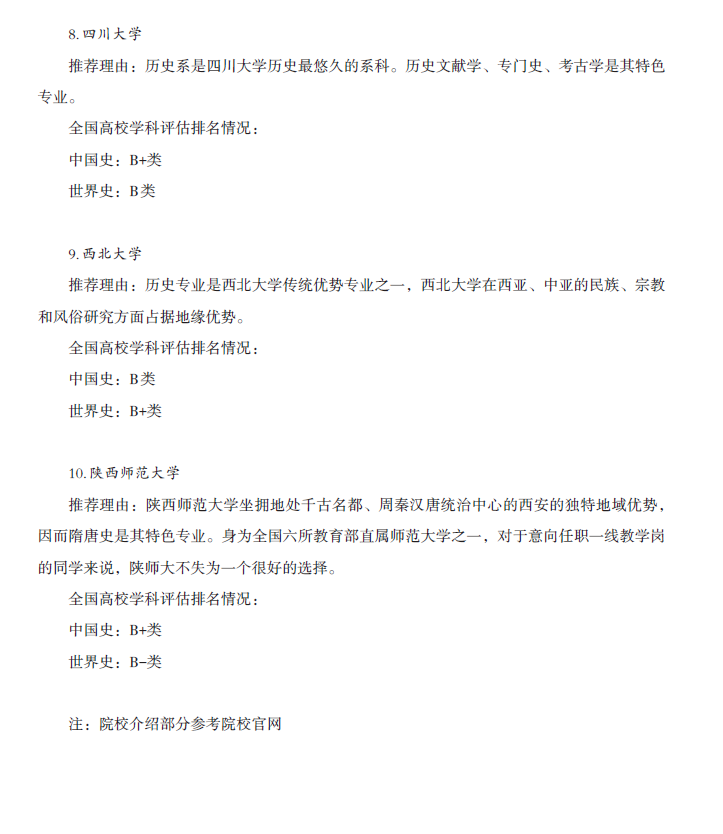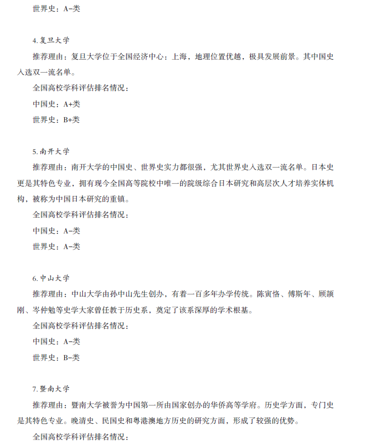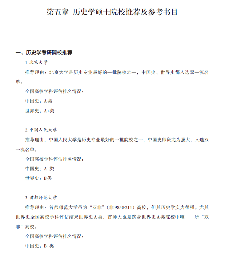 历史学硕士院校推荐及参考书目