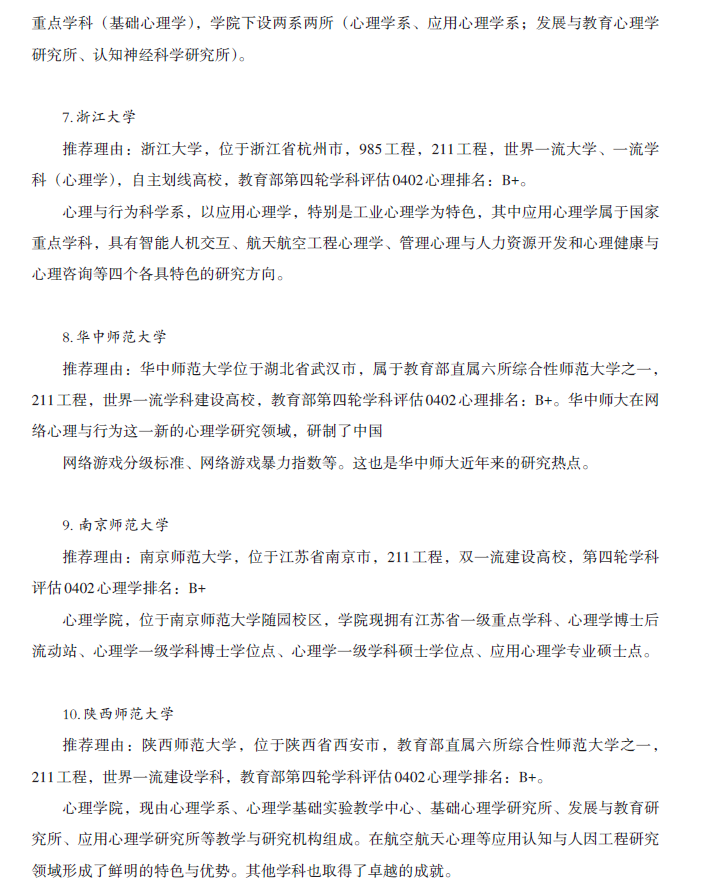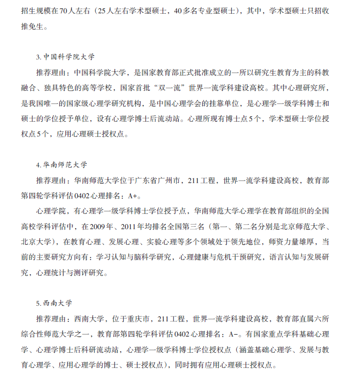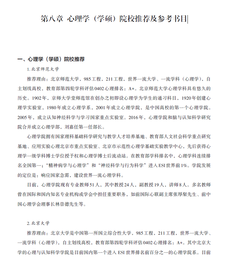 心理学(学硕) 院校推荐及参考书目